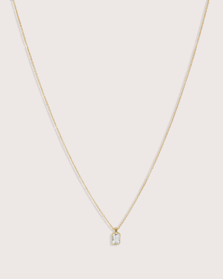 A bezel-set emerald-cut gemstone rests on a fine 14K gold chain, designed to catch light with every movement. Each stone carries its own meaning — a reflection of personality, birth month, or simply the color you love most. Minimal, radiant, and timeless, the Elise Birthstone Necklace is made to be worn every day and treasured for years.